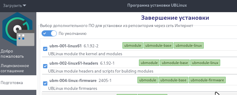 AUTOINSTALL[modules]="ubm-001-linux61,ubm-002-linux61-headers,ubm-004-linux-firmware,ubm-010-core,ubm-020-xorg-base,ubm-021-xorg-fonts,ubm-025-xorg-gl,ubm-030-xorg-gtk,ubm-035-xorg-qt,ubm-040-xorg-xfce,ubm-050-xorg-gtk-app,ubm-055-xorg-qt-app,ubm-060-xorg-theme,ubm-070-dm-lightdm,ubm-080-multimedia,ubm-100-ublinux,ubm-chromium-gost,ubm-libreoffice,ubm-linux61-dkms,ubm-linux61-r8168-8136,ubm-patch,ubm-rustdesk,ubm-virtual-guest"
