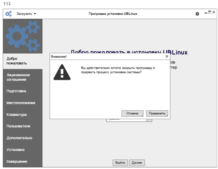 На данный момент если отменить установку нажатием в процессе установки отмена, она отменяет сразу же, хотя по дизайн документу, должно было всплыть окно, а уверены ли вы, что хотите отменить установку.