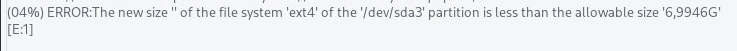 (04%) ERROR:The new size '' of the file system 'ext4' of the '/dev/sda3' partition is less than the allowable size '7,4873G'