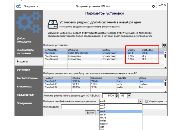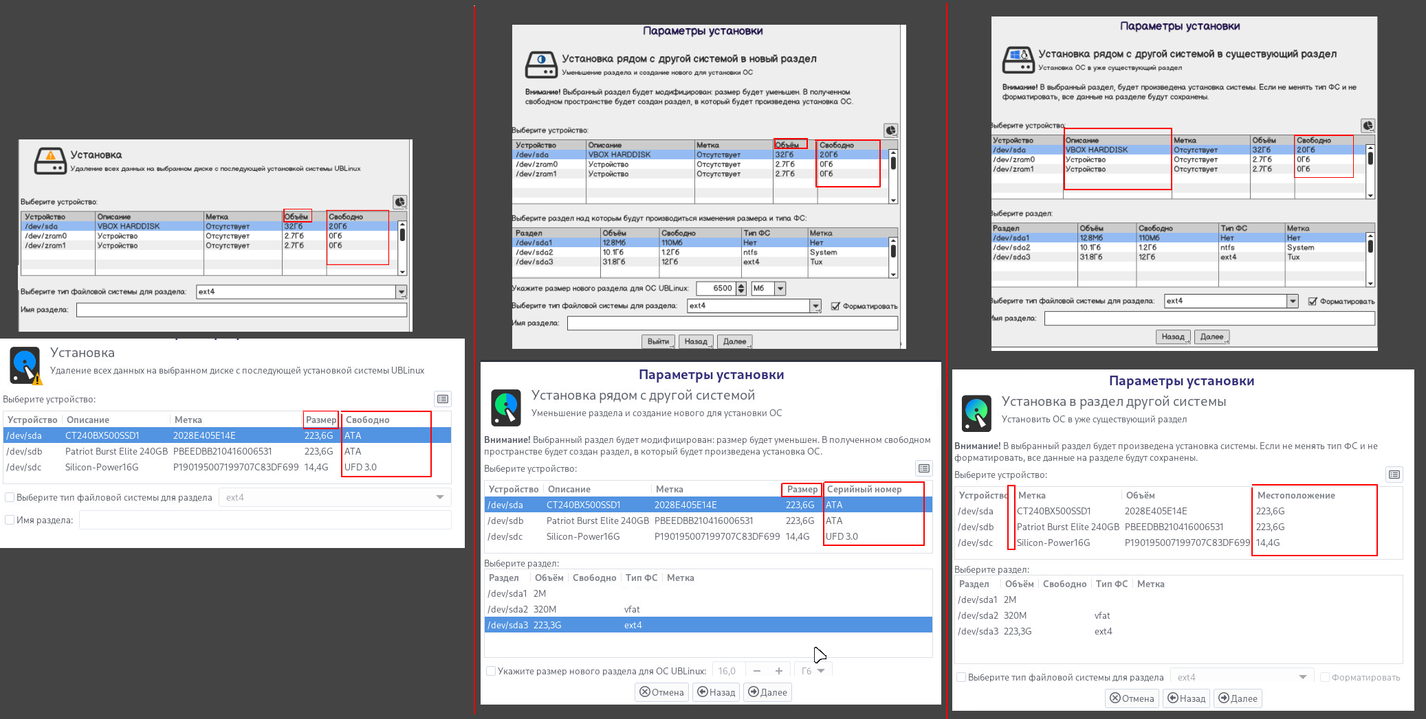 В дизайне "объем" во всех таблицах, в утилите "размер" - в таблице выбора устройства, и "Объем" в таблице выбора раздела