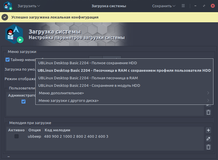 "Последний удачный вариант загрузки" удаляет параметр из конфигурации !