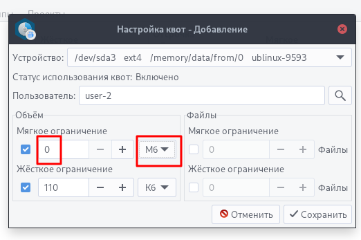 Скорее всего было выставлено значение ограничения, затем при изменении единиц измерения с Кб на Мб цифровое значение обнулилось