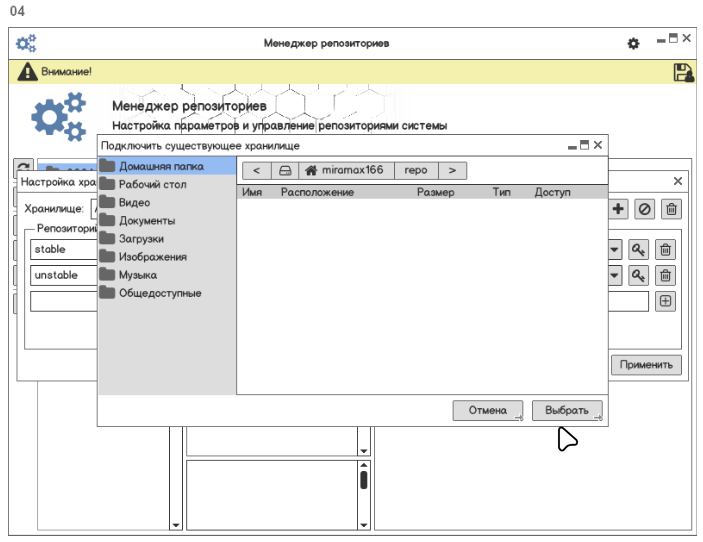 Заголовок должен быть "Подключить существующее хранилище" и кнопка создания нового каталога там не нужна