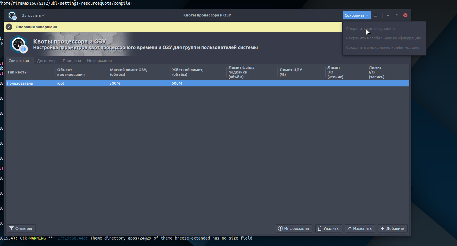 Сейчас странное уведомление о том что записана локальная конфигурация, хотя утилита только что открылась: