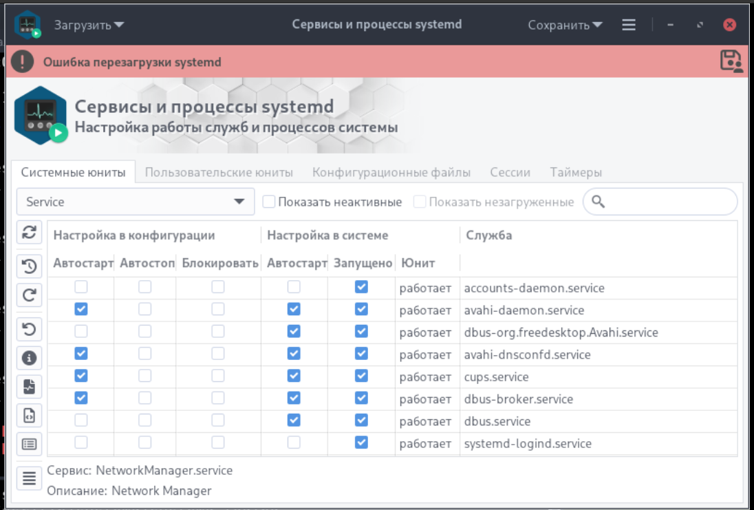 Проблема в следующем. При использовании кнопки "Перезапустить systemd" происходит Ошибка перезагрузки systemd, а именно