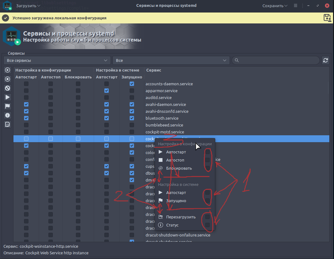 Ну вообще, всё кроме "Перезагрузить" и "Статус" копирует состояние галок в таблице. А на этих пунктах я ещё не менял ничего с тех пор как перенёс его из прошлой версии