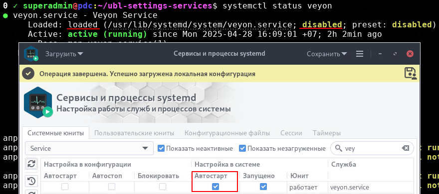 > Остается открытым вопрос с неправильным отображением галочки "Автостарт". На примере сервиса "veyon" автостарт выключен, однако из-за его "loaded" - в утилите включена галочка на "автостарт".