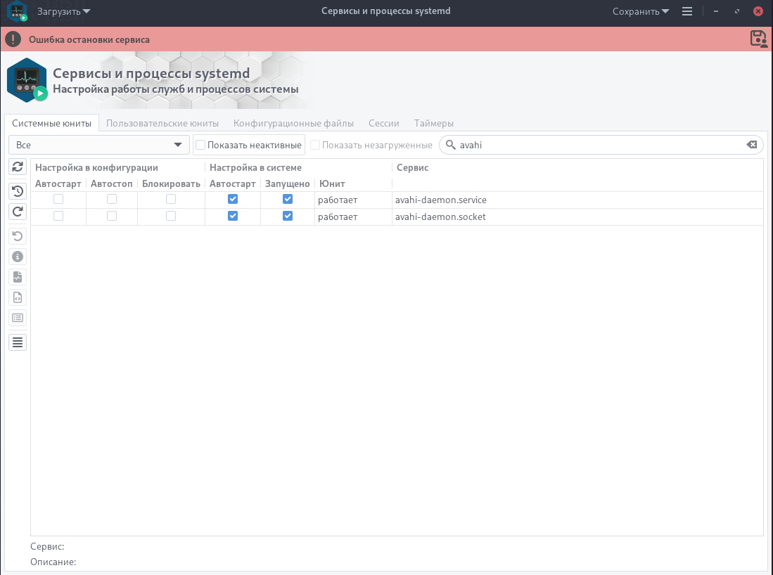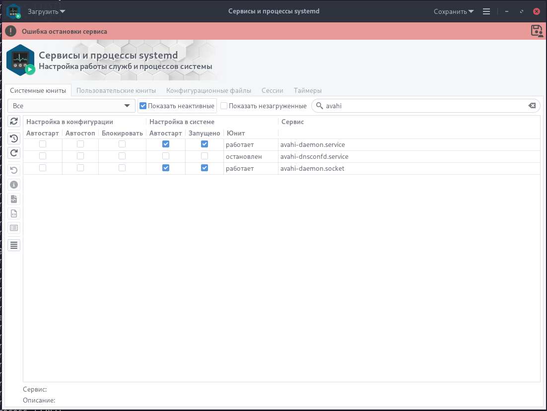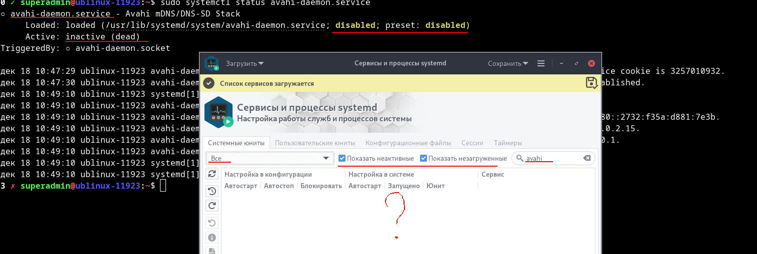 Но проблема отсутствующих сервисов никуда не делась и смею предположить, что для требования "Все, Неактивные, Незагруженные" команда составляется с "list-units", когда в свою очередь она показывает только загруженные. В любом случае сейчас должны отсутствовать сервисы например: