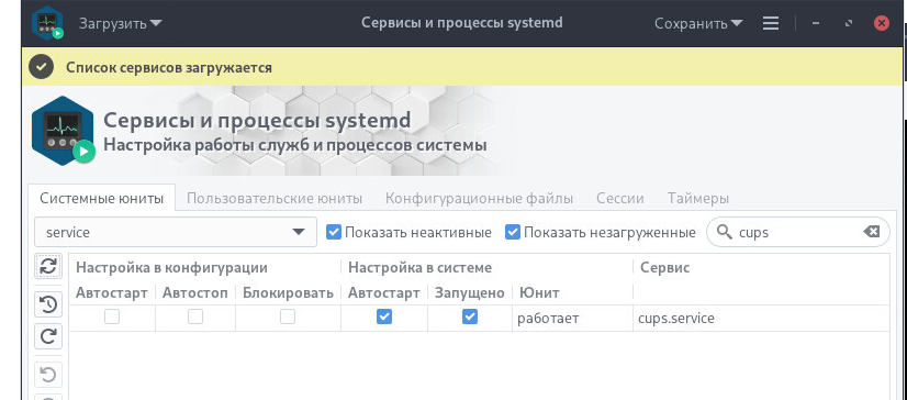 Отключила сервис из автостарта, сохранила в обе конфигурации, нажимаю "Загрузить локальную конфигурацию" и статус загрузки не уходит: