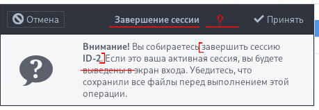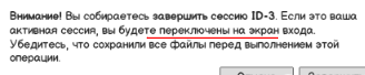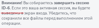 Внимание! Вы собираетесь завершить сессию ID-3. Если это ваша активная сессия, вы будете выведены в экран входа. Убедитесь, что сохранили все файлы перед выполнением этой операции.