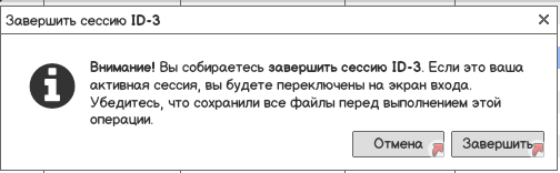 > **Внимание!** Вы собираетесь **завершить сессию ID-3**. Если это ваша активная сессия, вы будете выведены в экран входа. Убедитесь, что сохранили все файлы перед выполнением этой операции.