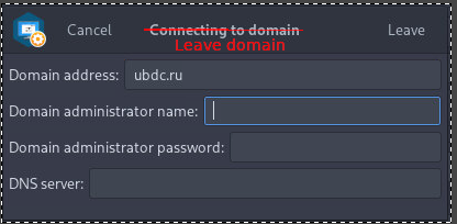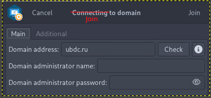 > Нажимая кнопку основного окна "Присоединиться" - Заголовок "Присоединиться к домену"