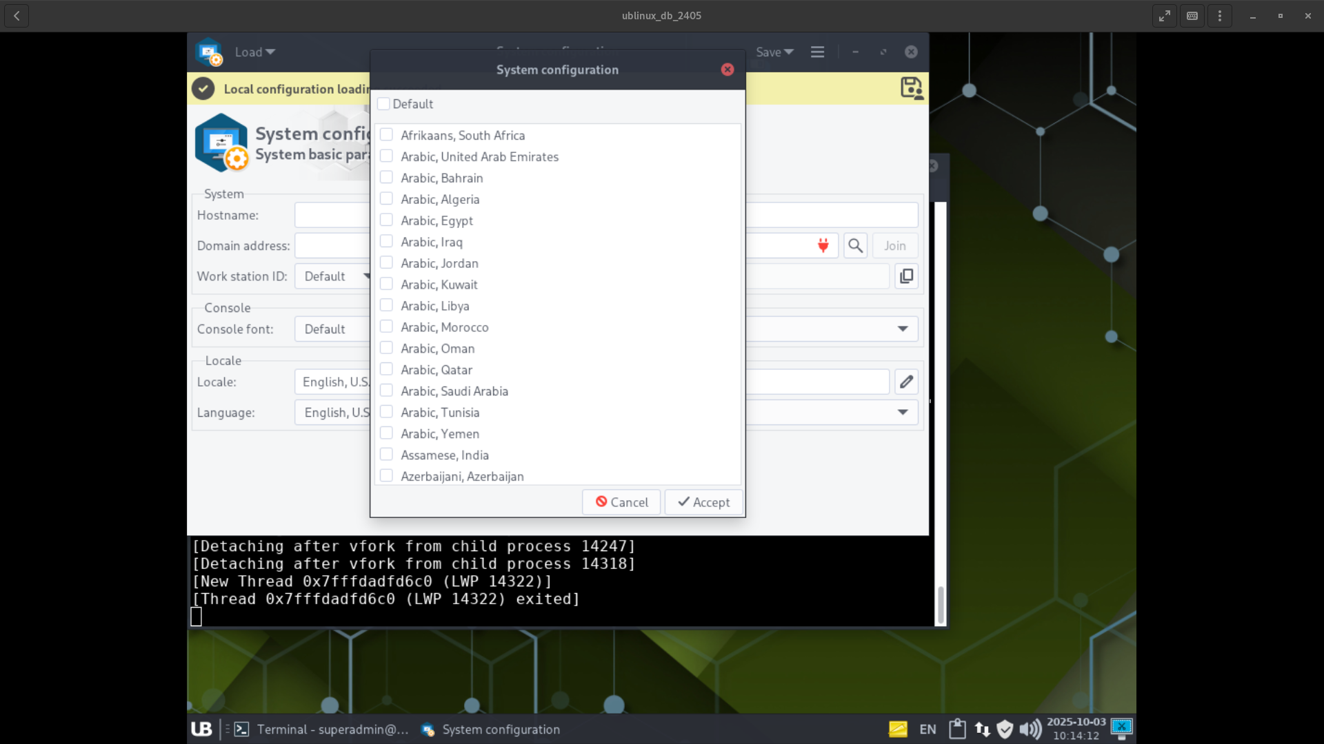 INFO:Execute the system configuration commands for [/etc/ublinux/locale] of the 'LOCALE' option.