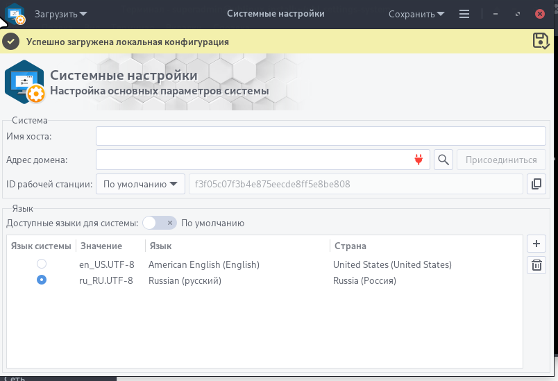 В таблице заголовок столбца слово "Значение" заменить на "Локаль"
