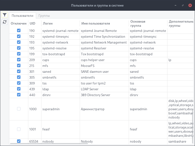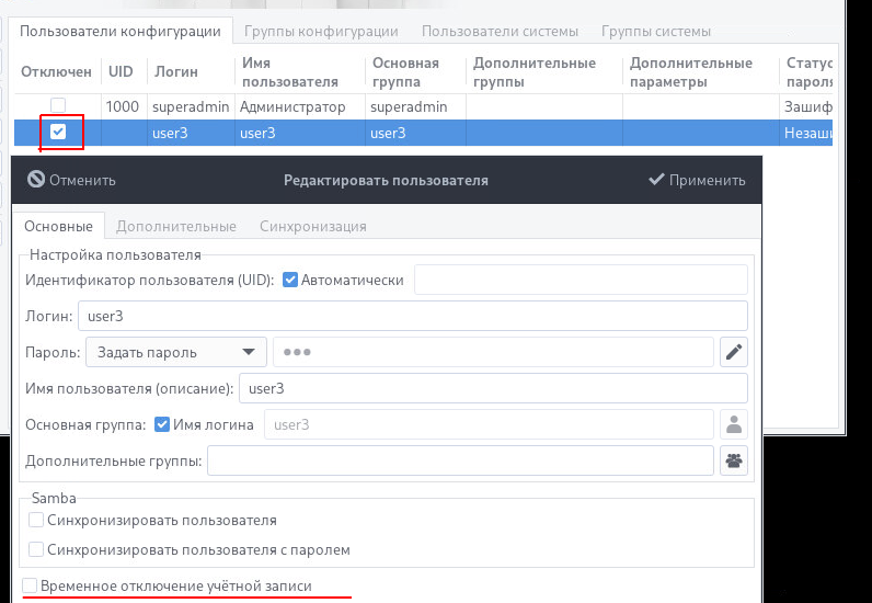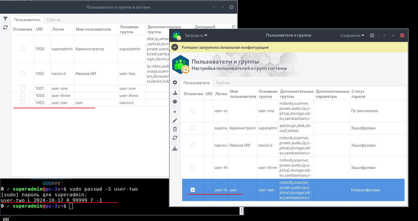 ublinuxto Cтатус пароля "Пароль не требуется" 1 year agoCтатус пароля "Пароль не требуется"to Статус "Отключен" не отображается в окне системных пользователей 1 year agoЕщё бы знать откуда эту информацию получать, потому что в passwd я не вижу чтобы был намёк на то что пользователь отключен