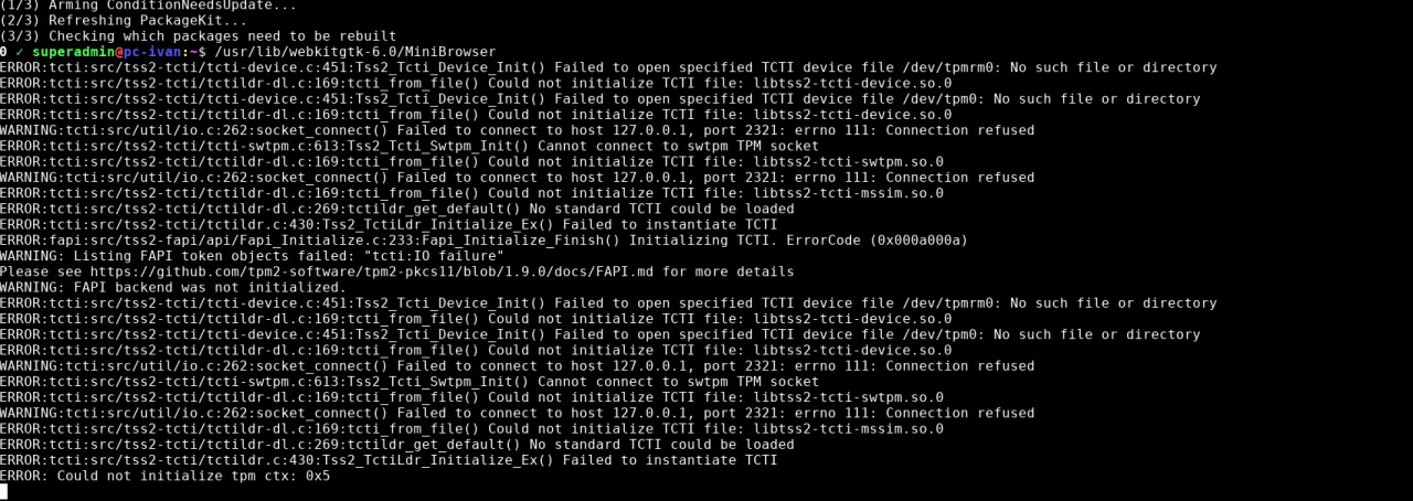 на 2204 не было, а на 2405 вот только первый раз было проверено. Я бы сказал, что надо поискать не наши утилиты с вебкитом и проверить в них работу. Вряд ли то что не трогалось больше года внезапно сломается, тем более что он буквально в ошибках пишет что FAPI бэкенд не инициализирован какой-то