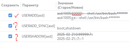 @asmeron необходимо подтвердить, что USERADD_SYNC[username]="boot,shutdown" не нужен для каждого сохранения.
