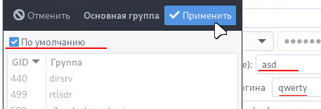 Хочу у текущего пользователя вернуть основную группу по умолчанию через чекбокс: