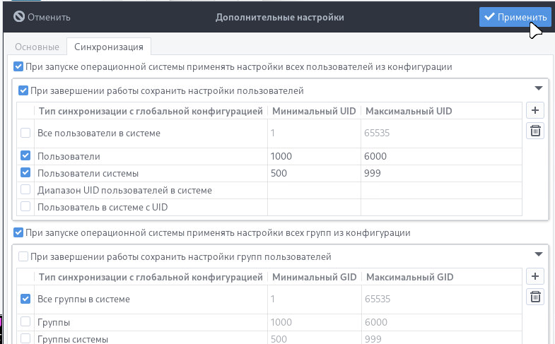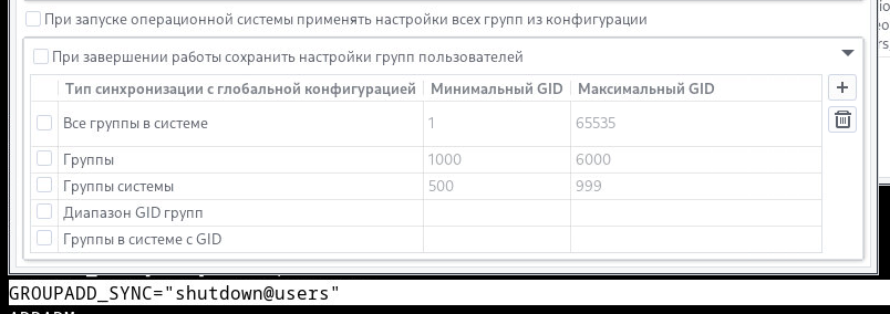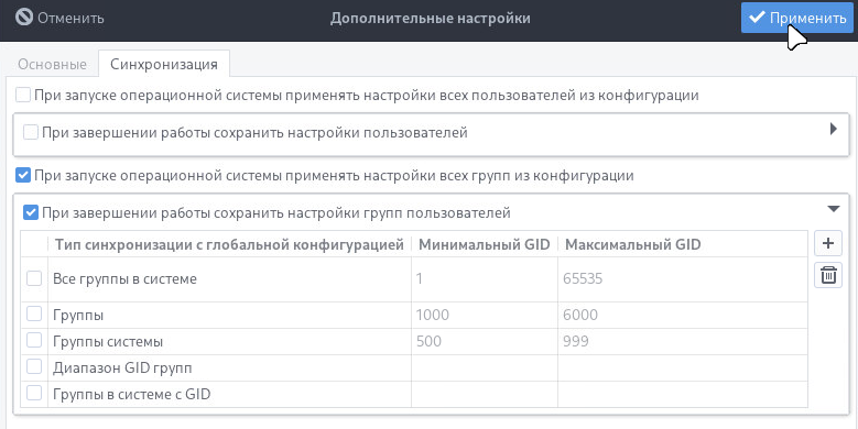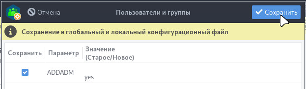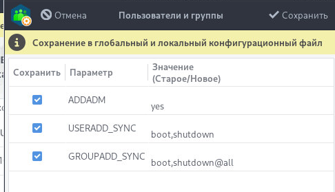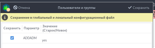 Выбрала только "Группы", сохранила в обе конфигурации, но при загрузке любой конфигурации - чекбокса нет:
