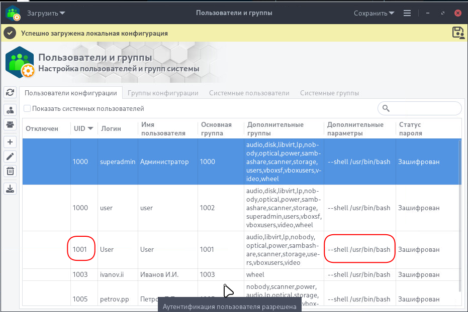 синхронизация сохраняет настройки в глобальный конфиг, а при запуске системы они попадают в локальную конфигурацию