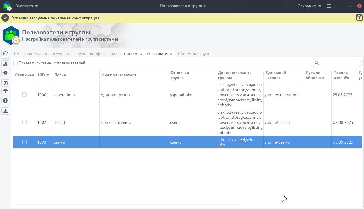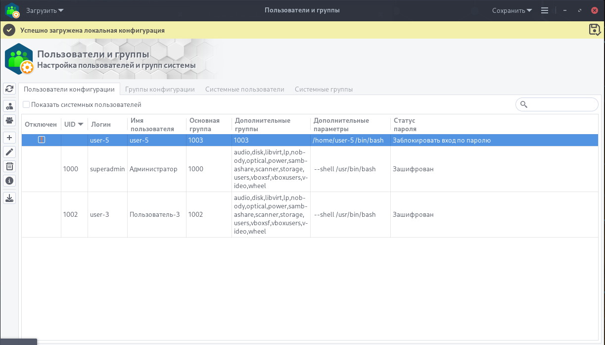 - Пользователь не верно перенесётся в таблицу "Пользователи конфигурации"