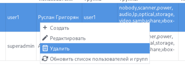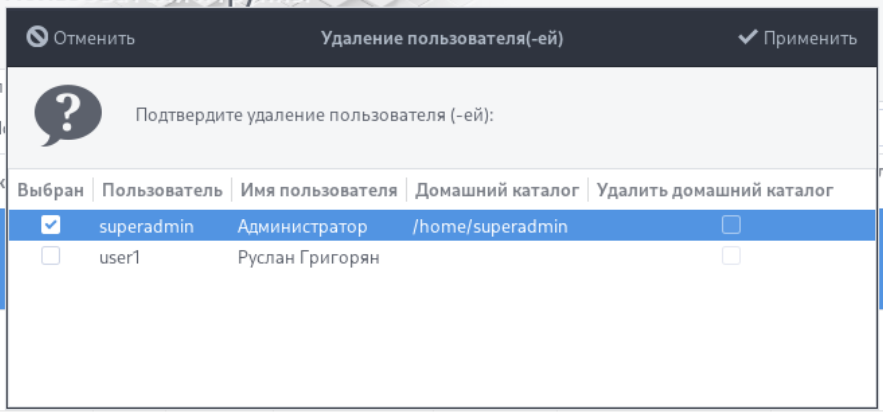 Если удалять из таблицы "Пользователи конфигурации" выделяется автоматически первый в списке пользователь #285
