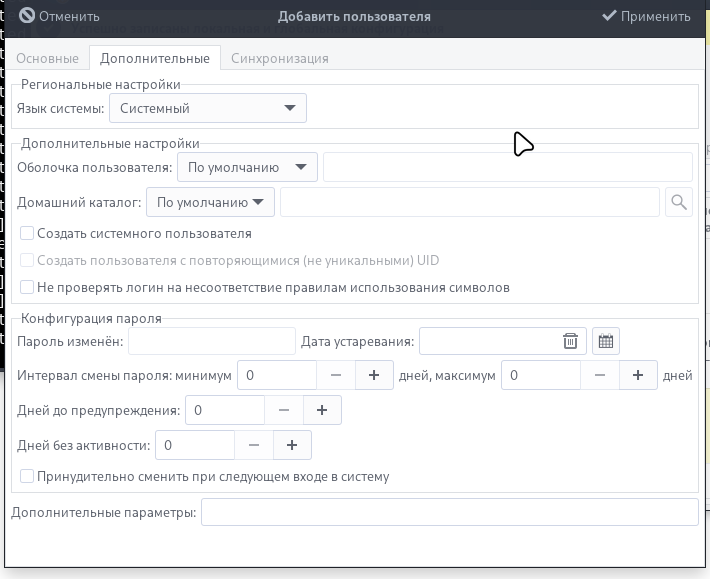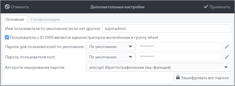 Меню "Дополнительные настройки" поле "Пользователь с ID 1000 является администратором"