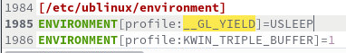 # ubconfig remove [system] ENVIRONMENT[profile:KWIN_TRIPLE_BUFFER] ENVIRONMENT[profile:__GL_YIELD]