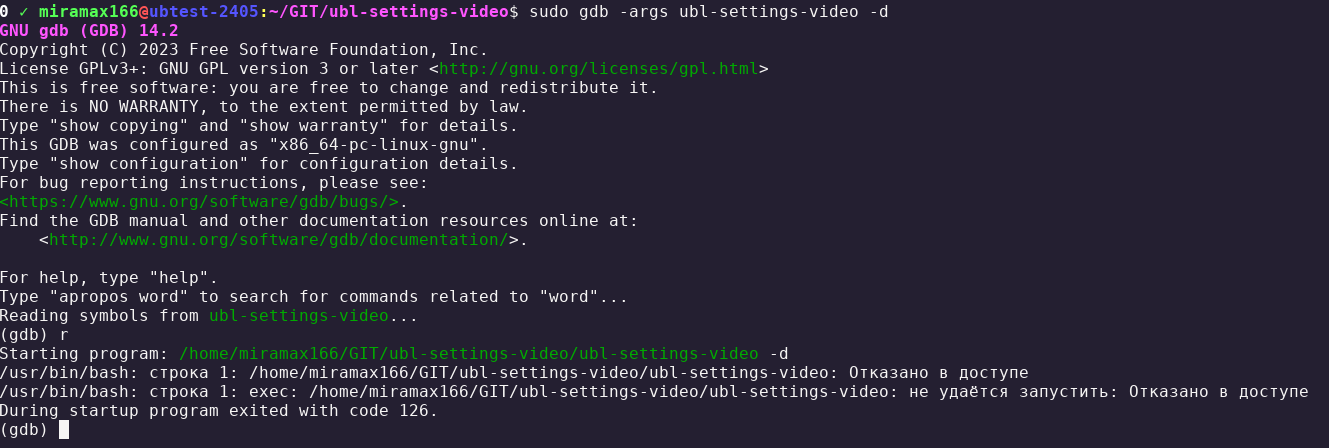 Запускается с sudo и без sudo (с очисткой конфига и без), с отладкой и без - успешно.