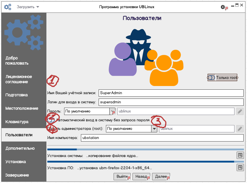 > Если пароль на вкладке пользователей выбран "По умолчанию", то в поле пароль должен быть дефолтный пароль "ublinux" прописан