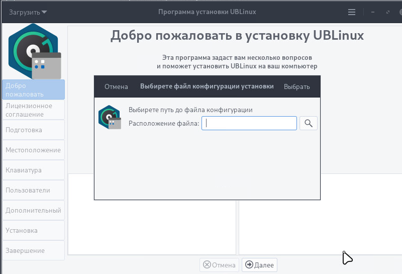 - После нажатия кнопкии далее на следующем слайде открыть диалог выбора файла конфигурации