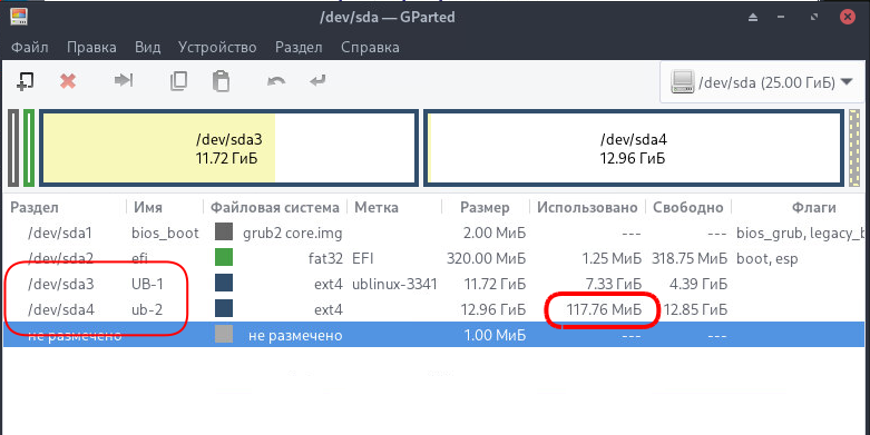 Я пробовала и в первый раздел ставить, где уже стоит прошлая система - в этом сообщении число - занятое место в разделе выводится.