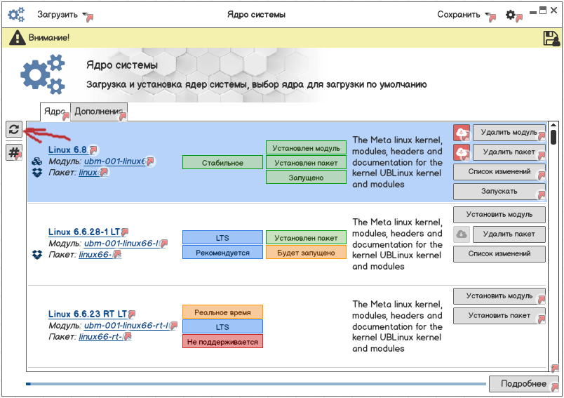 2. Так-же добавить отдельно в левом меню эту кнопку при нажатии в VTE запускается обновление БД пакетного менеджера и должно происходить обновление данных на всех вкладках