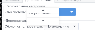 "Дополнительные настройки"добавить блок"Региональные настройки""Региональные настройки"добавить комбобокс"Язык системы:""Язык системы:"[EN]:"Default"[RU]:"По умолчанию""Язык системы:"[EN]:"System"[RU]:"Системный""Язык системы:"из значений полученныхubconfig [locale] LOCALE, разделитель запятая/точка-запятая"Язык системы:"добавляется в дополнительные параметры пользователя значение"--lang <value>""Default"удаляет параметр"--lang <value>""System"соответствует параметру"--lang system"5c7711363fС данным комбобоксом при первом использовании происходит подобное
